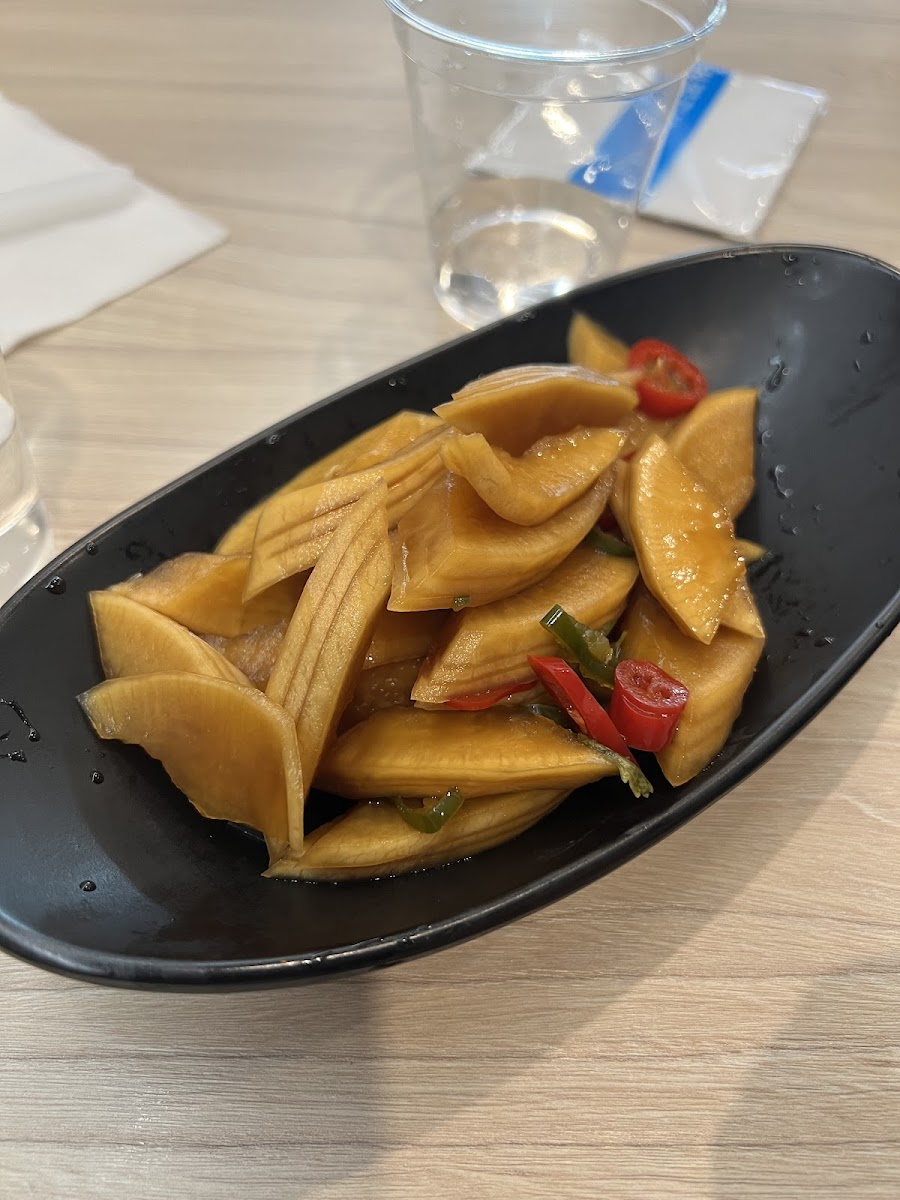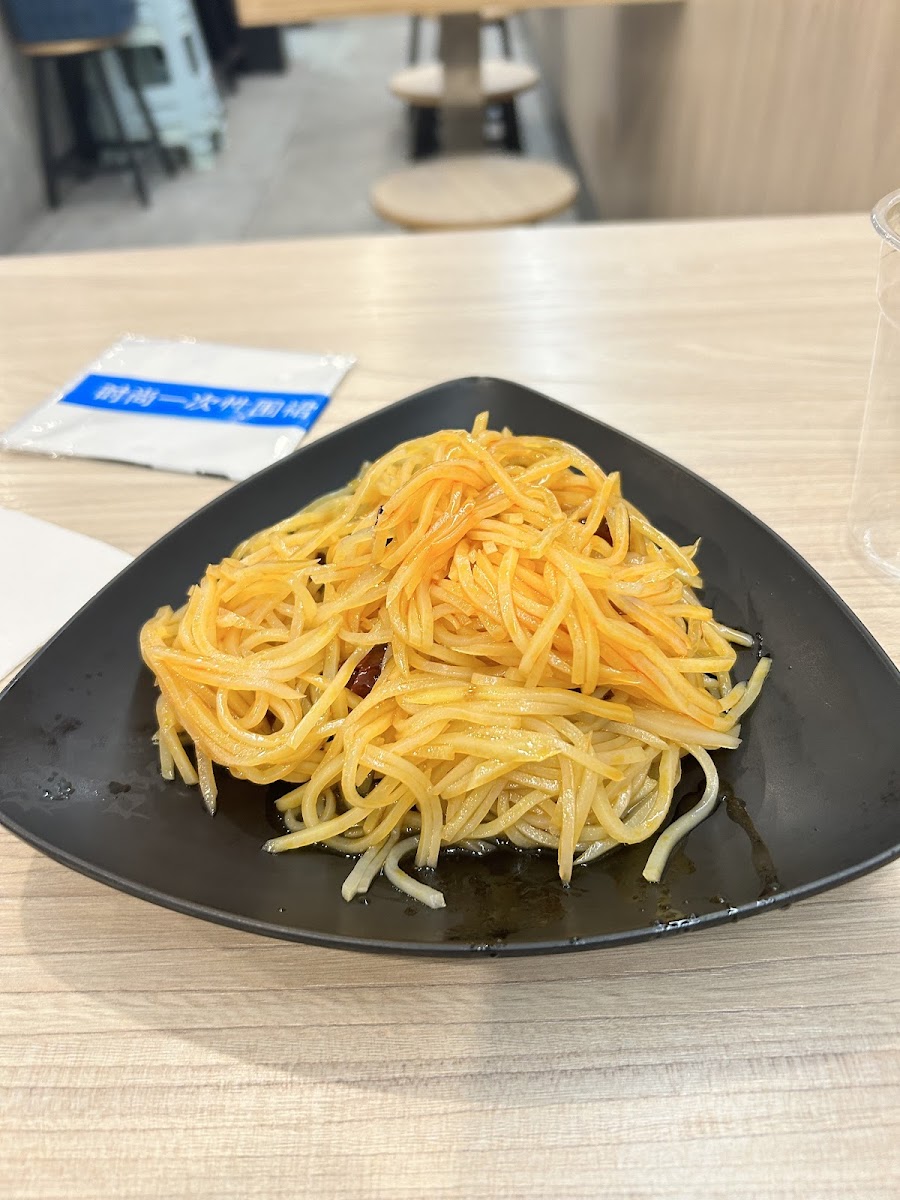 Another dish that stands out is the 大王油泼海鲜面 dawang seafood noodle. If you're a fan of garlic-flavored spicy seafood, this one is a must-try. The blend of spices and the freshness of the seafood will surely satisfy your cravings. If you’re in the mood for something crispy, don't miss the 炝拌土豆丝 shredded potato with peppers. This dish offers a perfect balance of texture and flavor, with crispy potatoes and a hint of spice that pairs wonderfully with the other items on the menu.